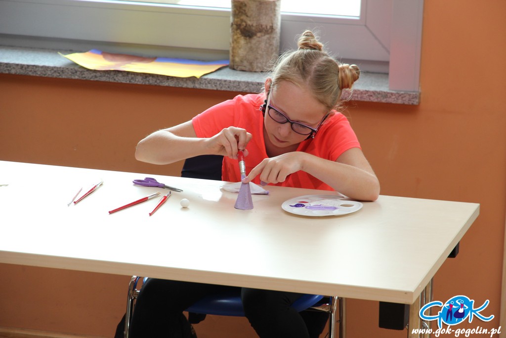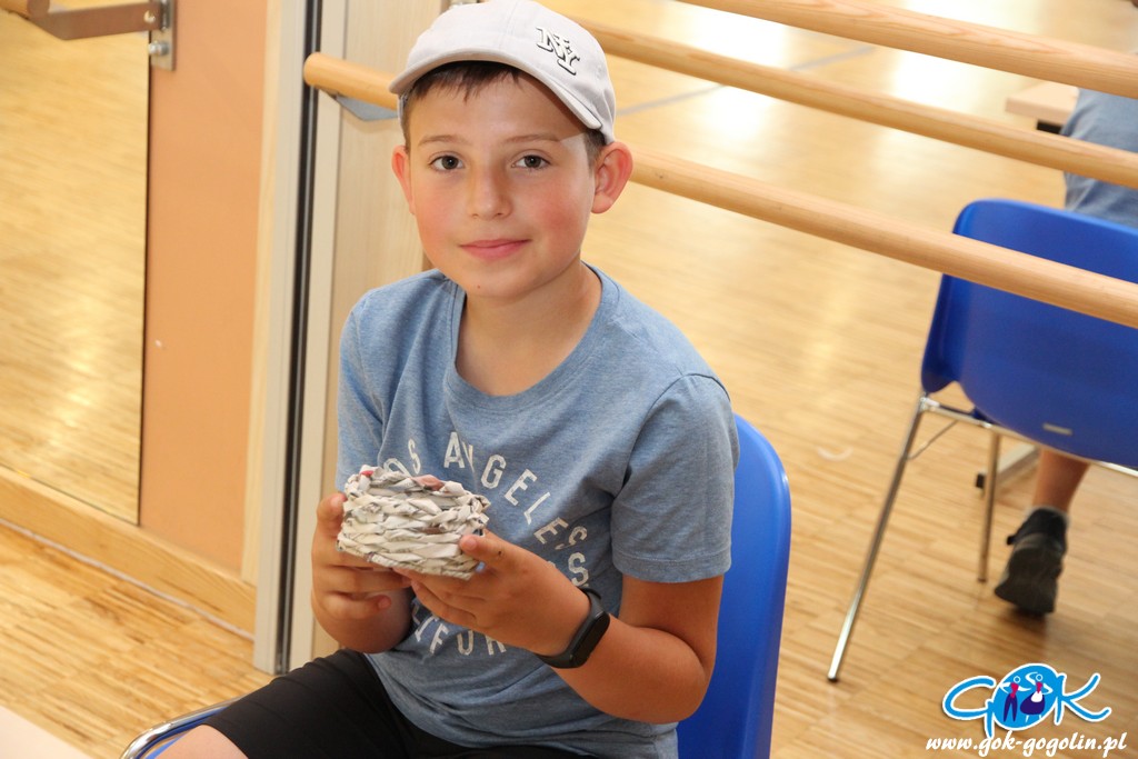 W trakcie środowych zajęć wakacyjne w Gminnym Centrum Kultury w Gogolinie dzieci dokończyły swoje koszyczki z papierowej wikliny. Następnie wykonały laleczki, skrzaty oraz inne ciekawe postacie z wytłaczanek po jajkach.