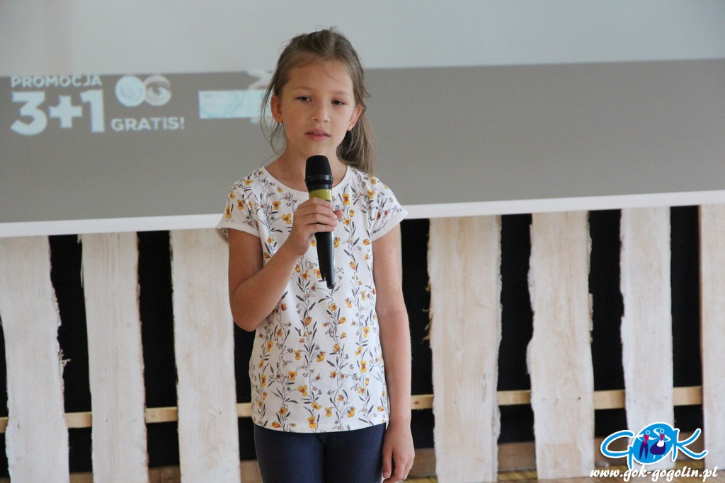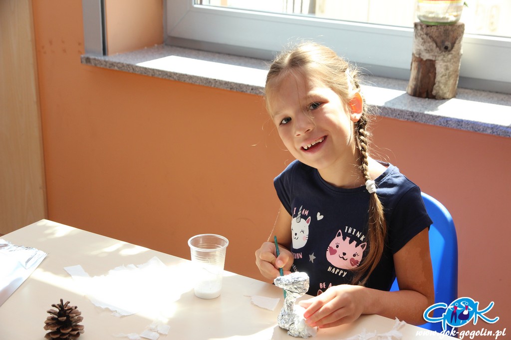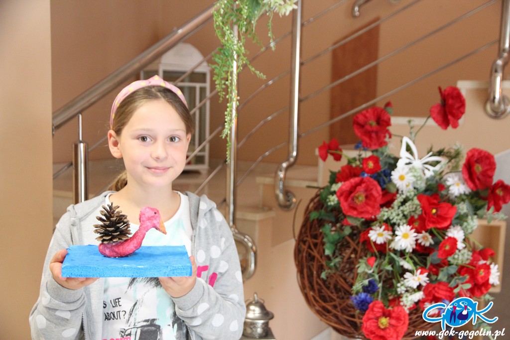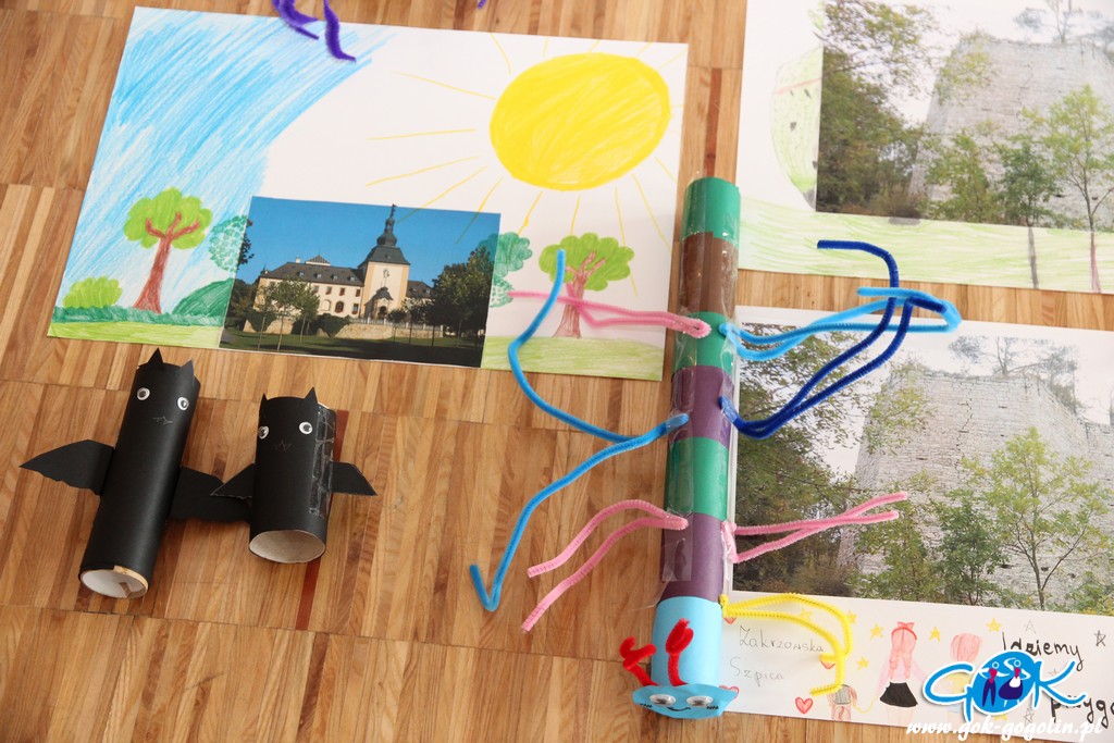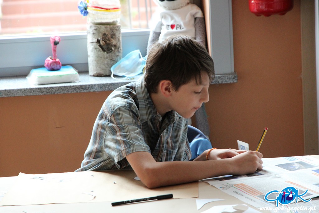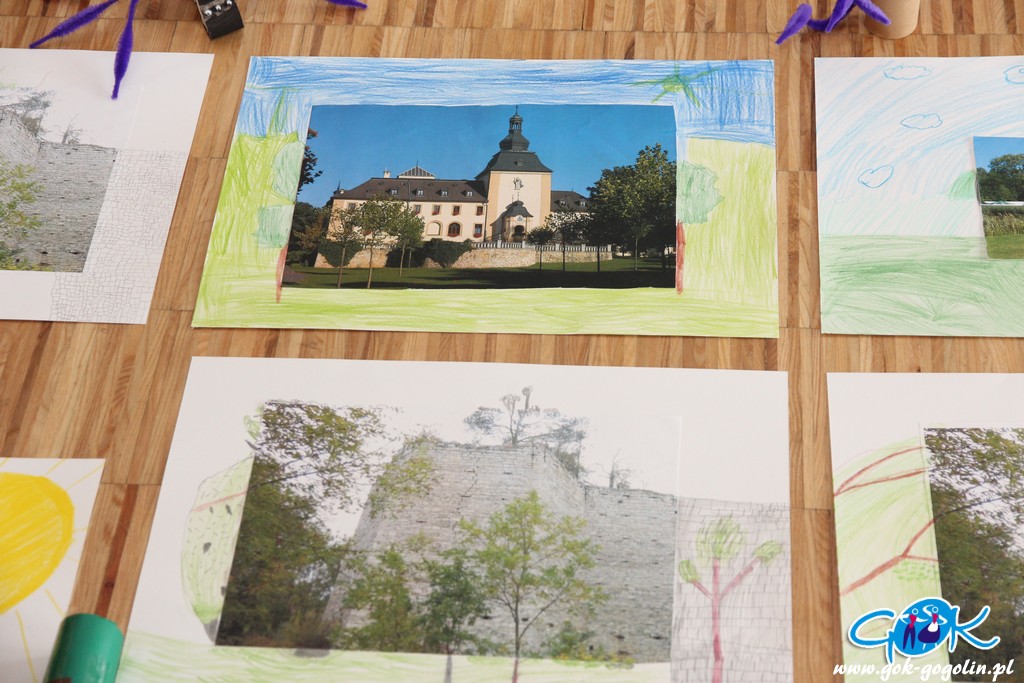 Piątkowe zajęcia w Gminnym Centrum Kultury poświęcone były turystyce lokalnej. Pani Ewa z Informacji Turystycznej w Gogolinie przygotowała szereg materiałów, dzięki którym dzieci zapoznały się z lokalnymi atrakcjami turystycznymi, a także poznały historię regionu oraz miejscowe legendy. Był film promujący Gminę Gogolin, a także praca plastyczna. Na kartkę formatu A3 przyklejono zdjęcie miejscach charakterystycznego dla miejscowości Gminy Gogolin. Zadaniem każdego uczestnika było „domalowanie” pozostałych elementów tak, aby obraz był jak najbardziej rzeczywisty. Zajęcia zakończyła zabawa w karaoke.