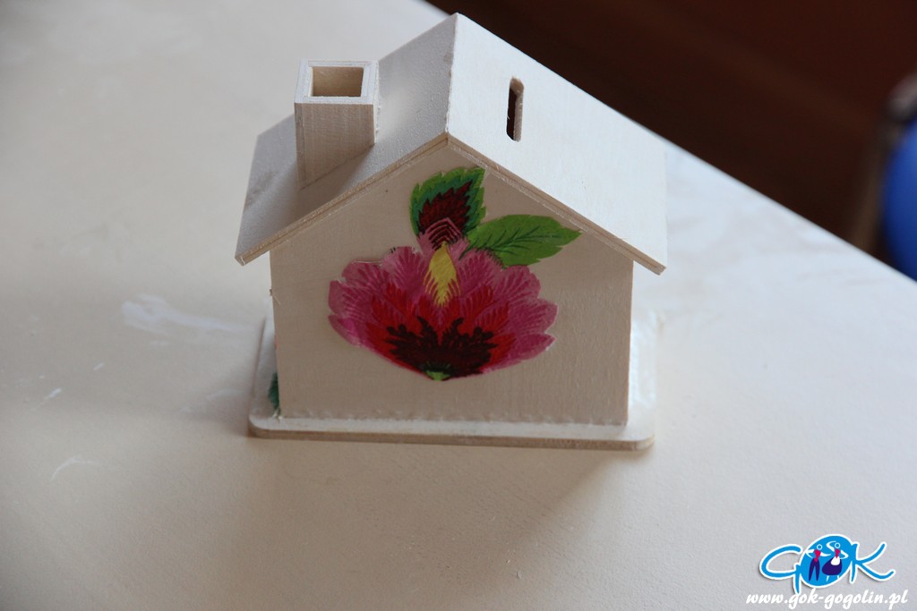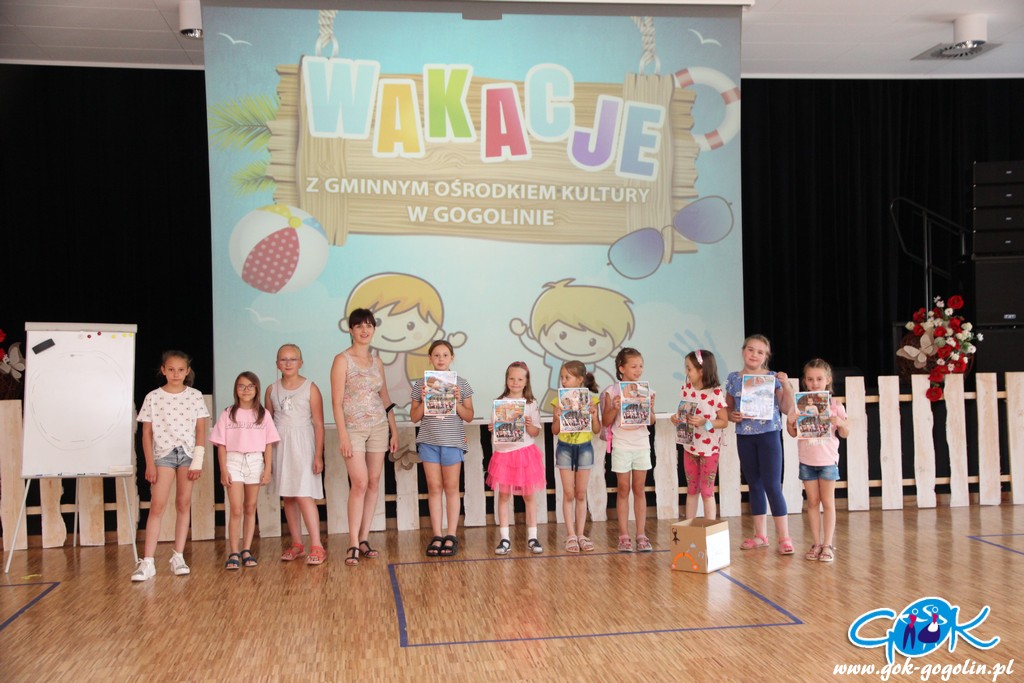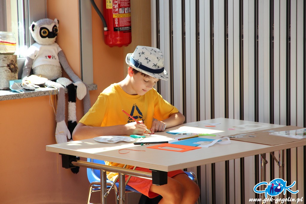 Ostatniego dnia zajęć wakacyjnych w Gminnym Centrum Kultury w Gogolinie uczestnicy zajęć zdobili drewniane skarbonki techniką decoupage polegającą na przyklejaniu na powierzchnię wzoru wyciętego z serwetki papierowej. Był też również czas na dokończenie swoich wcześniejszych prac. Nie zabrakło także spaceru na świeżym powietrzu. Na zakończenie zajęć każdy otrzymał pamiątkowe zdjęcie.