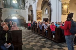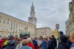Kolejnym punktem programu była wizyta w Muzeum Śląska Opolskiego, gdzie seniorzy zapoznali się z dziejami miasta oraz bogatymi zbiorami sztuki. Na opolskim rynku uczestnicy wysłuchali historii ratusza i okolicznych kamieniczek, po czym udali się ulicą Szpitalną w kierunku dawnej synagogi i kościoła Franciszkanów. W kaplicy św. Anny podziwiali sarkofagi Piastów opolskich – cenne świadectwo dziedzictwa dynastii.