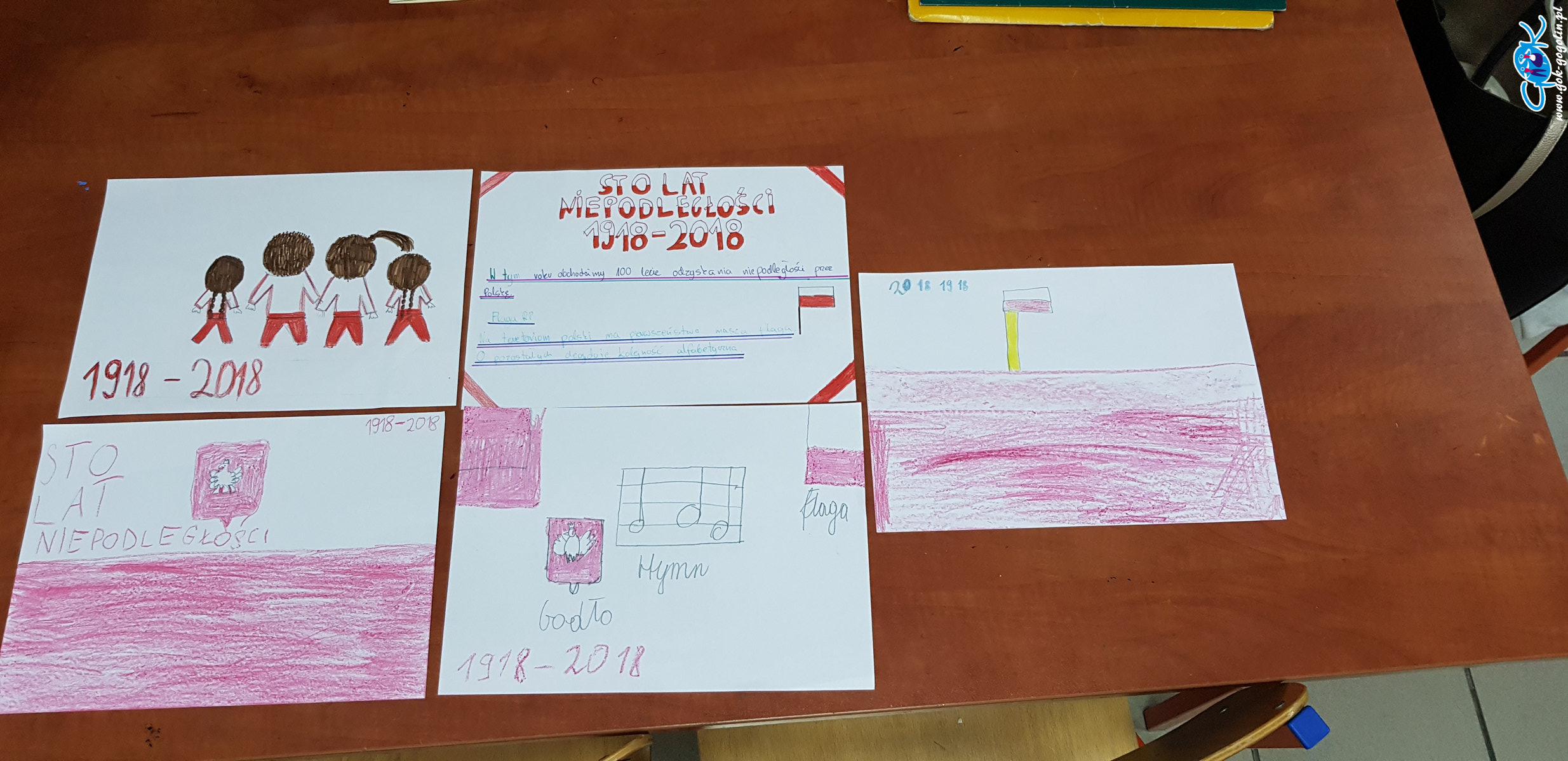 W tym roku przypada setna rocznica odzyskania Niepodległości przez Polskę. Z tej okazji zostały zorganizowane warsztaty, na początku zadaniem dzieci było rozwiązanie krzyżówki, która mimo że była dosyć zrozumiała czasami sprawiała problem. Następnym ćwiczeniem było stworzenie pracy plastycznej pt. „Nasza Polska”. Dzieci wykazały się nie tylko swoją kreatywnością w tworzeniu prac, ale także wyraziły swoją wiedzę w temacie oraz należytą powagę, która świadczyła o ich dojrzałym zachowaniu.