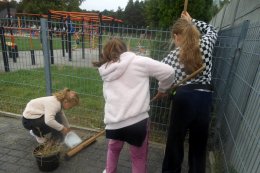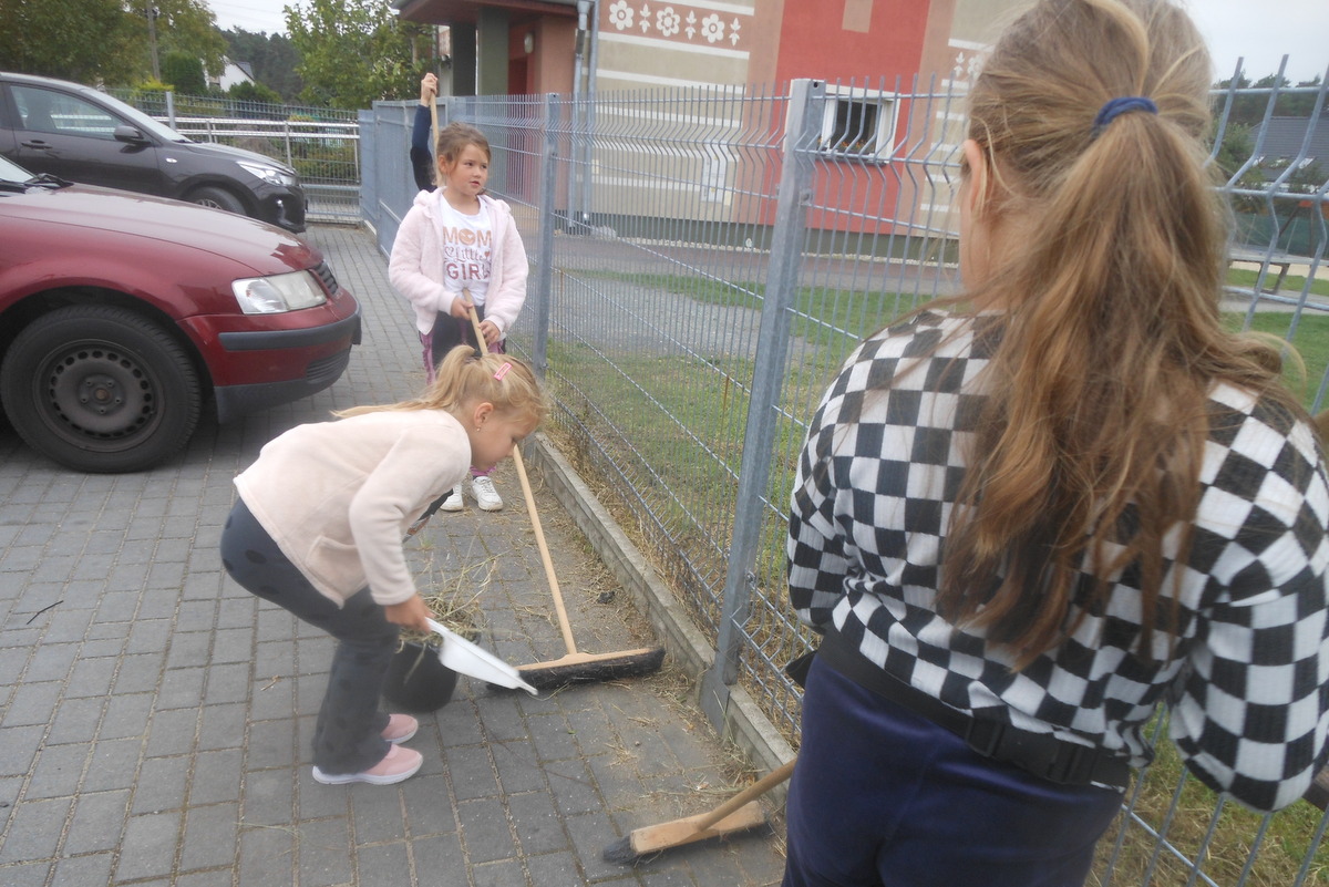 Zgodnie z zasadą „czym skorupka za młodu nasiąknie, tym na starość trąci”, opiekun świetlicy Pani Irena Kalisz zwraca uwagę, jak istotne jest kształtowanie dobrych nawyków już od najmłodszych lat. Dzieci z zaangażowaniem uczestniczyły w sprzątaniu terenu, dając przykład, że troska o czyste i zadbane otoczenie to wspólna sprawa całej społeczności.