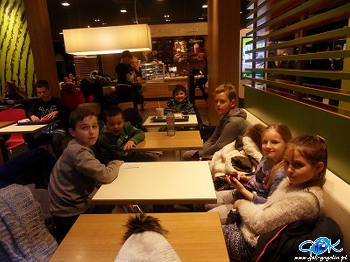 No i minął pierwszy tydzień ferii ... ale za to jak było fajnie...Ferie rozpoczęliśmy od przypomnienia zasad bezpieczeństwa podczas ferii, spotkanie poprowadziła pracownica Posterunku Policji w Gogolinie - dzielnicowa dzielnicy Gogolin - Strzebniów. Opowiedziała dzieciom o zasadach bezpieczeństwa podczas zimowych zabaw na świeżym powietrzu. Dzieci miały również możliwość zobaczenia radiowozu policyjnego. Oprócz tego odbyły się zajęcia lepienia z modeliny, różne gry stolikowe. Kolejnego dnia dzieci wykonały kanapeczki - zmaganiom nie było końca, powstawały bardzo kolorowe, a przede wszystkim zdrowe pyszności. Nie mogło również zabraknąć wyjazdu do kina na film animowany "Padington 2", a po kinie nie mogło zabraknąć Mc'donalda. Mieliśmy popołudnie z książką.