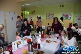 Uczestnicy zajęć mieli okazję stworzyć prezenty dla swoich ukochanych babć – świeczniki, które sami pomalowali, ozdobili, udekorowali i dziadków – notesik z długopisem oraz życzeniami. Każdy starał się, jak tylko mógł. Powstały przepiękne prezenty, które dzieci wręczyły swoim najbliższym w dniu ich święta.